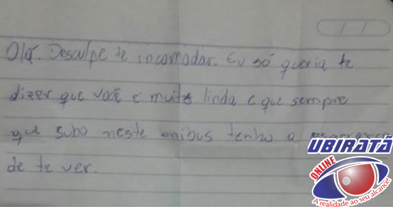 [dropcap]A [/dropcap]publicação rendeu milhares de curtidas e vários comentários nas redes sociais. A publicação é de uma jovem, que recebeu um bilhete fofo dentro do ônibus do transporte público, linha 35, em Foz do Iguaçu. Ela agora quer encontrar o admirador secreto.